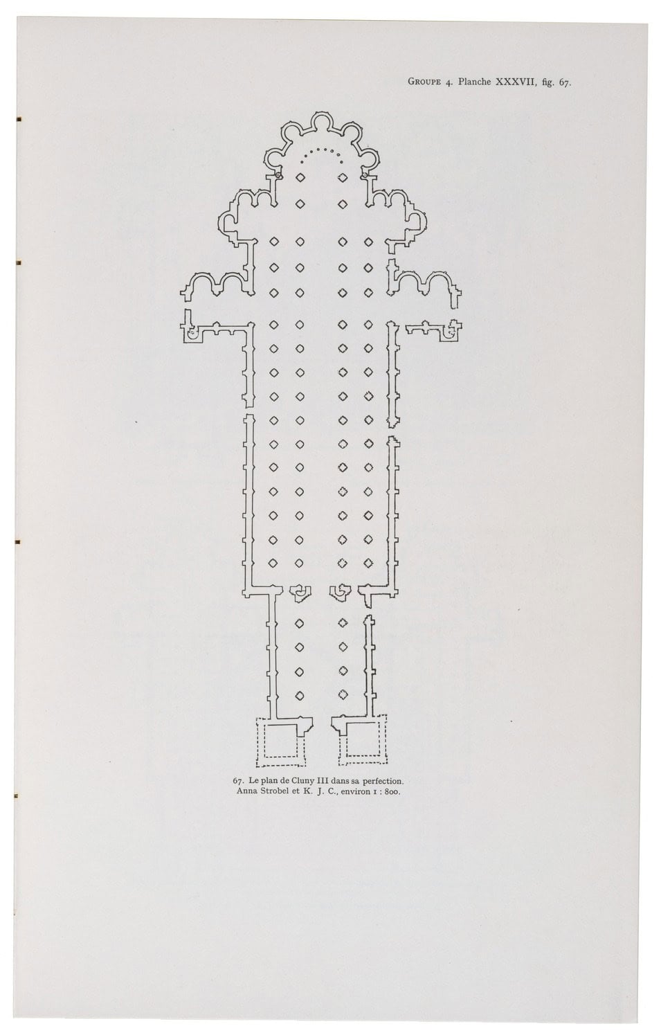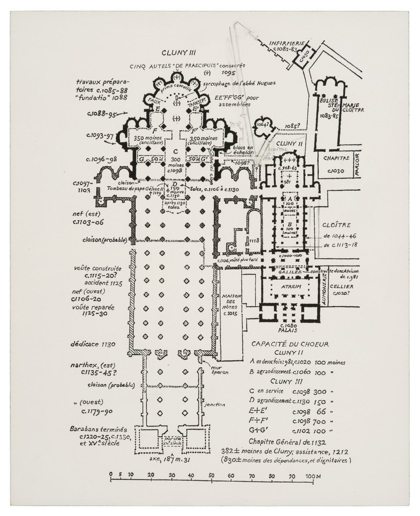 Labelled “Le plan de Cluny III dans sa perfection,” Cluny III in an ideal reconstructed plan as of 1120
