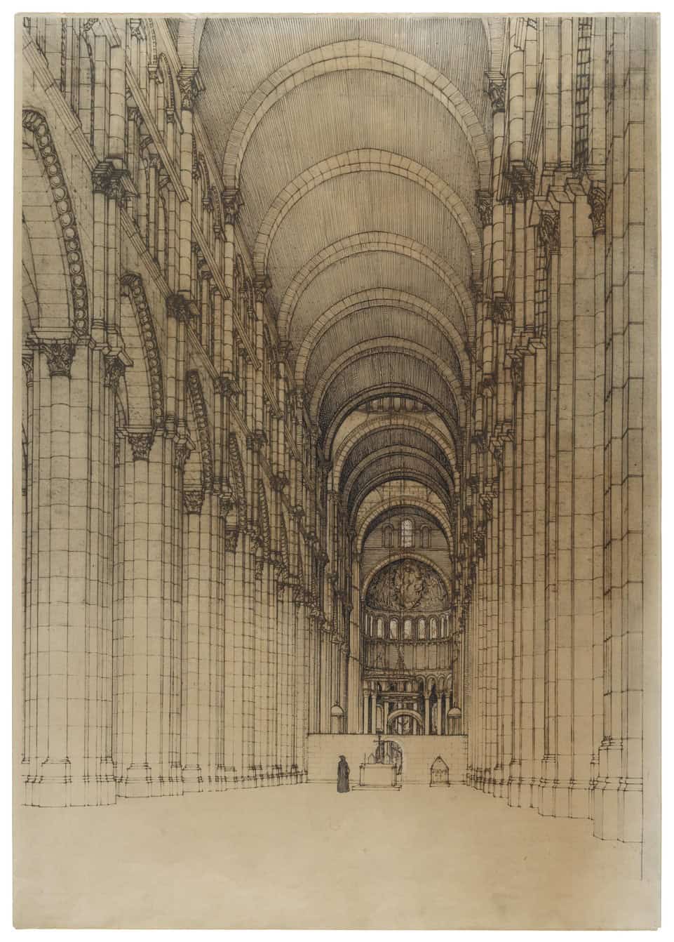Reconstruction view of Cluny III. View from the seventh bay of the nave towards the apse