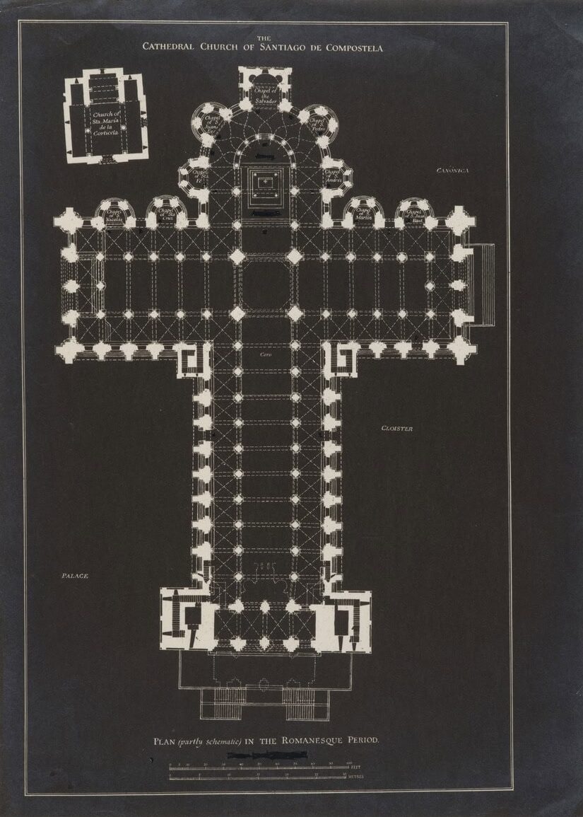 Santiago de Compostela complex. Plan of the basilica and adjacent structures with later changes and additions