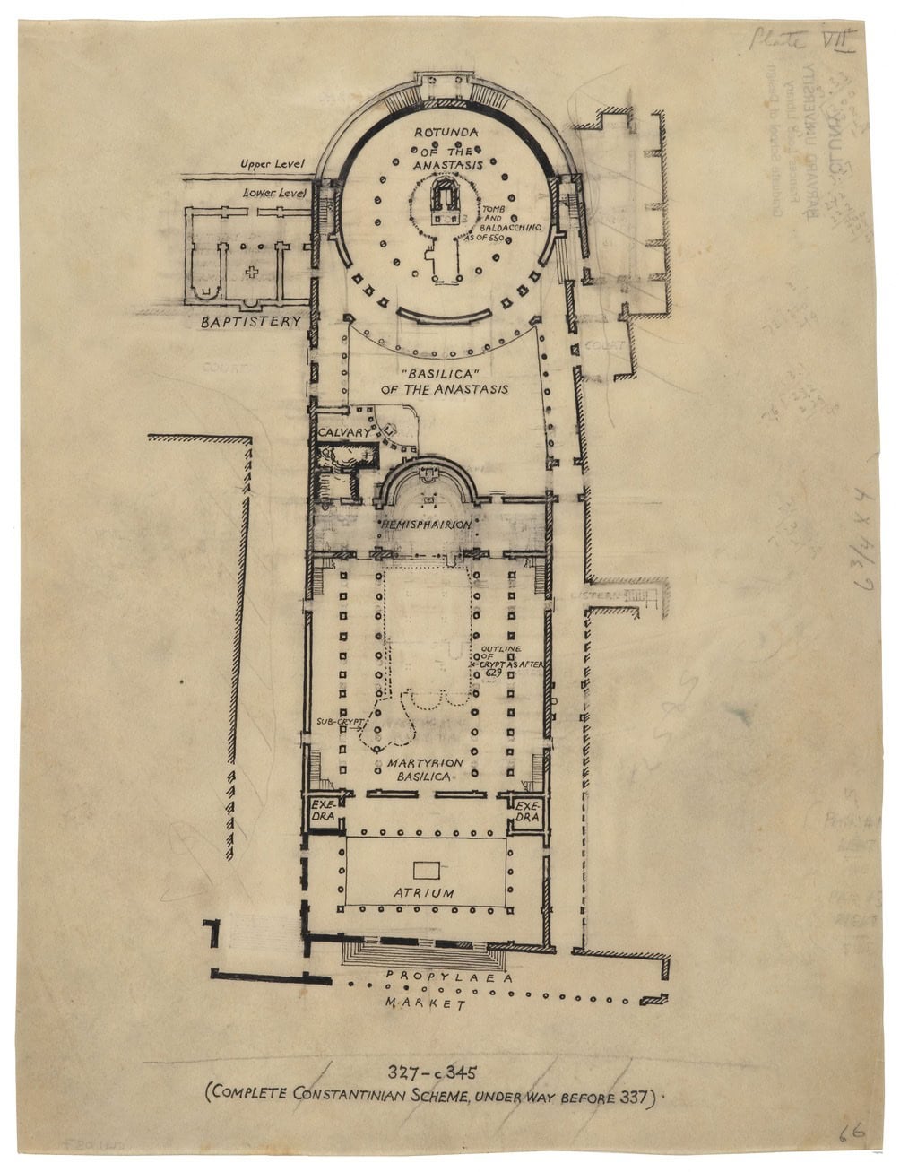 Reconstruction sketch of the Holy Sepulcher complex in Jerusalem as in 327–335