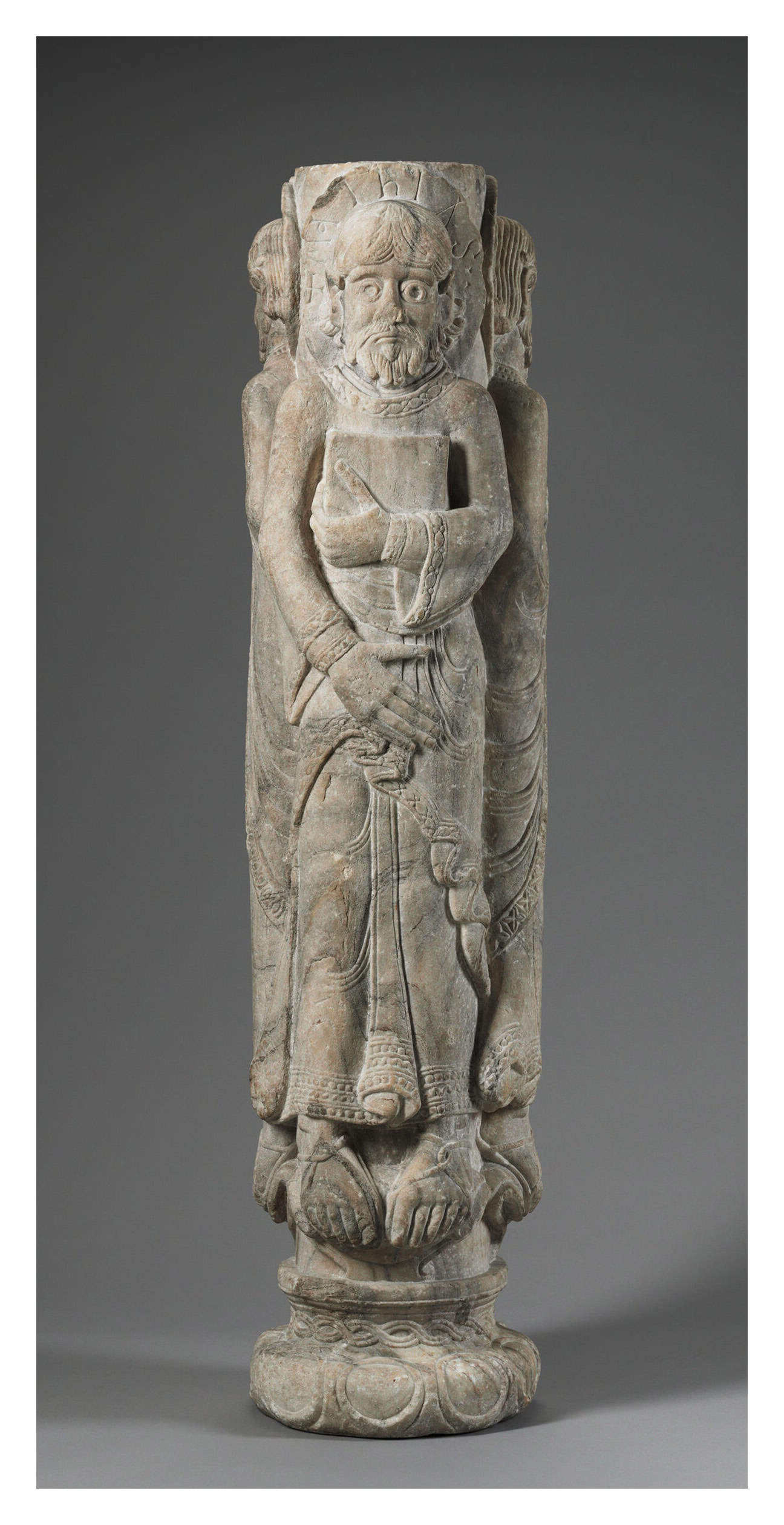 Both the Old Fogg Museum and Robinson Hall, the latter housing the architecture school from 1902 to 1972, already had significant collections of plaster casts, now dispersed, although some few pieces can still be seen at the GSD and elsewhere at Harvard (figs. 87, 88, 89). Drawing from casts was essential to the training of architects in the United States in the late-nineteenth to early-twentieth century. In this way they acquired facility working in various historical idioms while forming their taste based on models considered to be the best. And here, too, as we saw at the beginning what mattered was the telling part rather than the coherent whole. While in one sense the Cluny capital casts were quite ordinary additions to the Fogg display of great historical works, in other ways they were unusual, since most of the casts studied by American architecture students were of Greek and Roman antiquities or the Renaissance. The casts of panels from the Parthenon frieze acquired in 1895 for the opening of the Old Fogg Museum exemplify this (fig. 90) as do Richard Morris Hunt’s pair of classicizing griffons and an anthemion of cast stone for the museum’s roof and a pair of marble Classical or classicizing columns perhaps from Robinson Hall (figs. 91, 92, 93). Conant’s casts of the Cluny capitals were part of a new trend at Harvard to diversify the cultural contexts of the works of art displayed in Harvard museums both geographically and chronologically. Already in 1889, the Harvard Semitic Museum, now the Harvard Museum of the Ancient Near East, had been founded with artifacts collected for it by the Assyriologist David Gordon Lyon. And a Germanic Museum (later the Busch-Reisinger Museum) was established, again, much of the impetus coming from a Harvard professor, in this case, Kuno Francke. By 1903 casts of German medieval sculptures, donated by Kaiser Wilhelm II, could be seen at Harvard first in Rogers Hall but after 1921 in the present Busch Hall, the building having been designed by the German architect German Bestelmeyer but, because of the war, carried out by Herbert Langford Warren. This group included casts of the monumental Romanesque bronze doors and candlestick from Hildesheim (figs. 94, 95). The 1920s was also the time that Harvard began to acquire original works of western medieval sculpture. Photographs of the Old Fogg Museum show how plaster casts of the Parthenon frieze were exhibited together with French Romanesque capitals donated by Arthur Kingsley Porter and others (figs. 87, 96, 97). In 1933, while Conant’s plaster casts were on display at the Fogg, a major example of Romanesque sculpture was donated to the museum by the Spanish government through the offices of Arthur Kingsley Porter (fig. 98). This large columnar support from San Pelayo Antealtares in Compostela with its three standing apostles is an exceptionally fine example of Romanesque style.